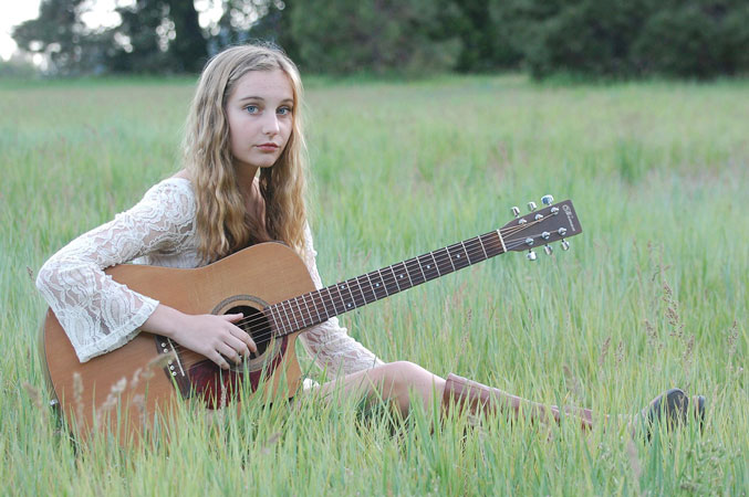 She quickly became interested in songwriting when she began to learn the guitar, writing her first song as a student in sixth grade. Since then she has continued to perfect her guitar playing and song writing abilities, while also learning piano, and working with other local musicians in performance and creative play.